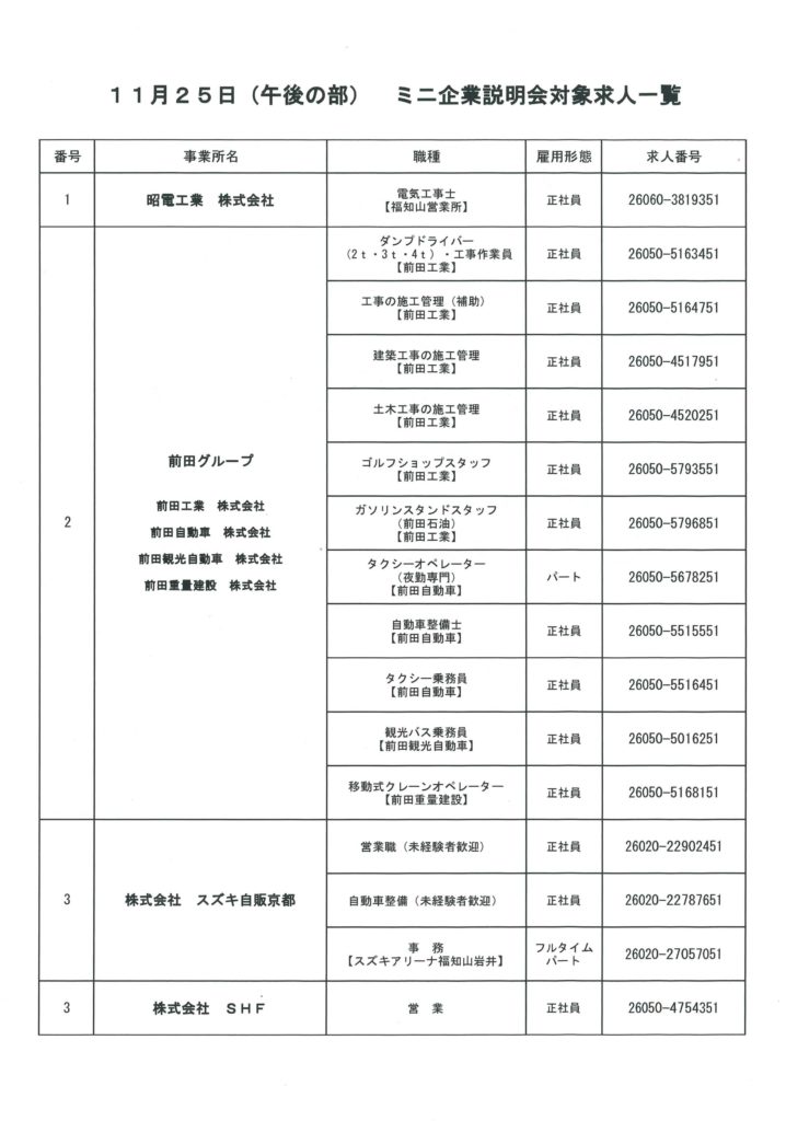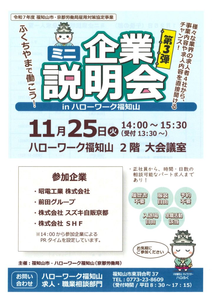 ハローワーク福知山で、「ミニ企業説明会」が開催されます!